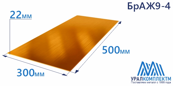 Бронзовая полоса 22x300x500мм БрАЖ9-4