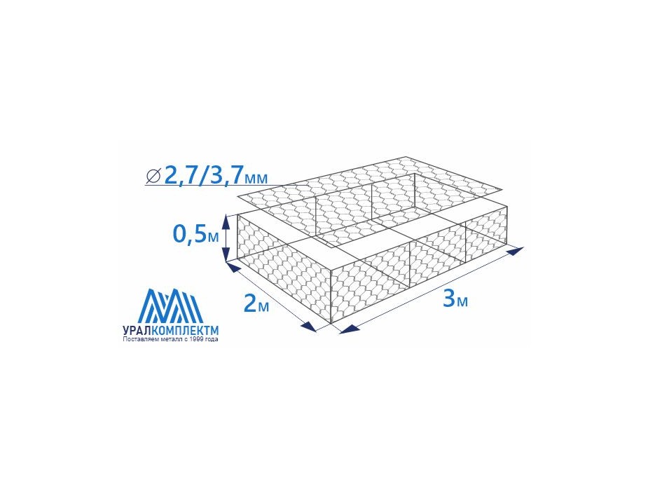 Габион матрасного типа 3х2х0,5-2,7/3,7-ЦП