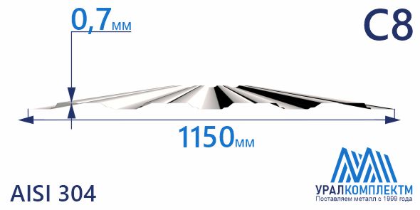 Профнастил нержавеющий С8 0.7 AISI 304