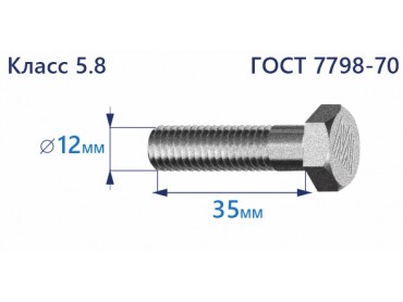 Болт с шестигранной головкой 12х35 к.п.5.8 Zn