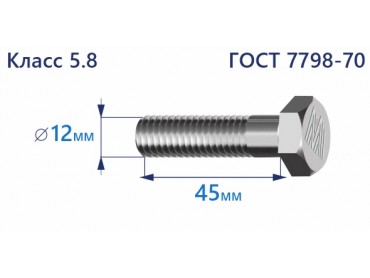 Болт с шестигранной головкой 12х45 к.п.5.8