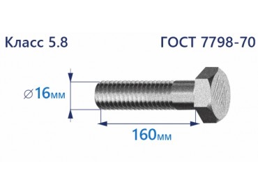 Болт с шестигранной головкой 16х160 к.п.5.8 Zn