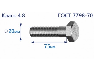 Болт с шестигранной головкой 20х75 к.п.4.8 Zn