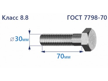 Болт с шестигранной головкой 30х70 к.п.8.8 Zn