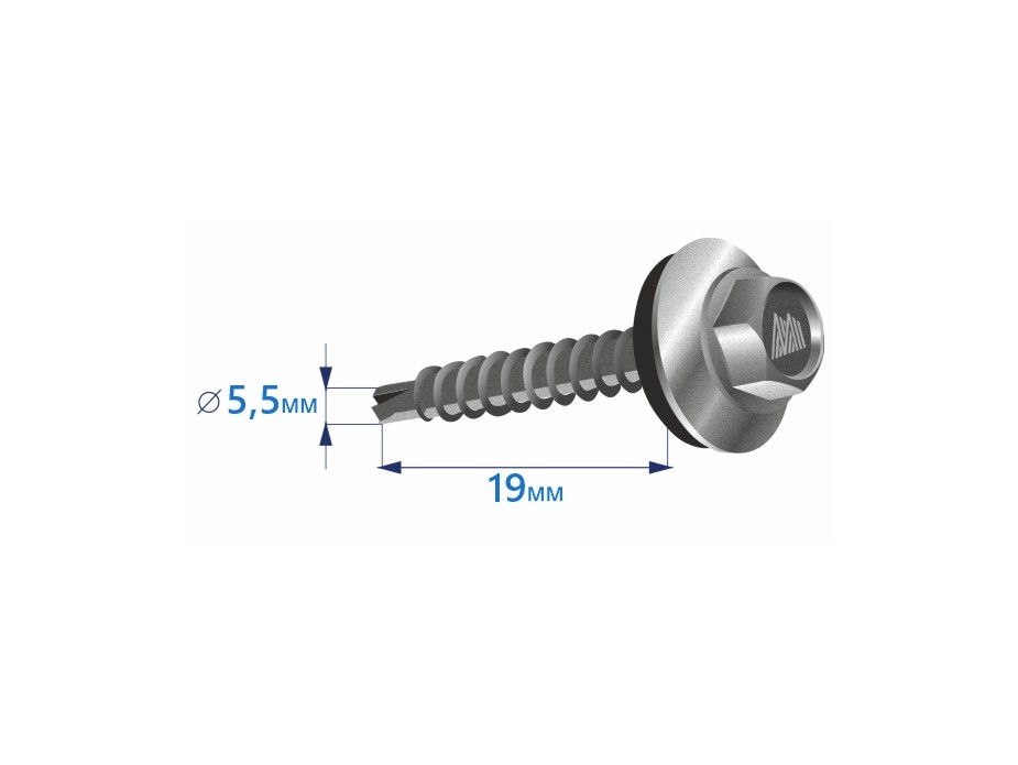 Саморезы кровельные 5.5х19 Zn сверло шайба