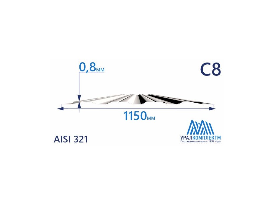 Профнастил нержавеющий С8 0.8 AISI 321
