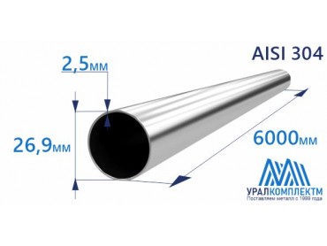 Труба нержавеющая 26.9х2.5 AISI 304 зеркало
